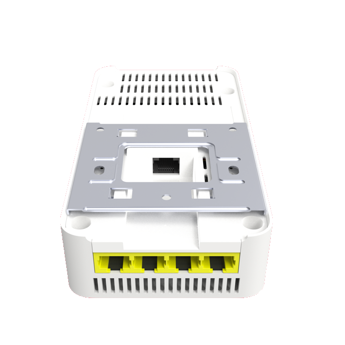WiFi 6室内双频墙面AP,内置天线,双频四流,最大带宽2.976Gbps;支持4路千兆有线接口;支持1路千兆上联,支持802.3afPoE远程供电和本地48V直流供电接口。
