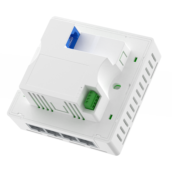 WL8200-XW4 (L) 采用内置天线设计,给予1个千兆上联接口,4个千兆下联接口。可以安装在标准的86面板上,免布线、免施工。