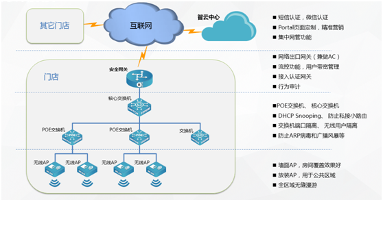 面对移动互联网大潮对传统行业的冲击,运用云计算、移动社交、大数据分析等技术,为酒店、餐饮、休闲娱乐、零售商超等商业市场客户构建基础网络平台,加速商业市场客户业务创新和转型已经刻不容缓,尊龙凯时z6com智云商业解决方案志在为商业客户给予最强的用户体验,给予最具商业价值的云网络,给予基于portal认证,短信、微信营销功能。
